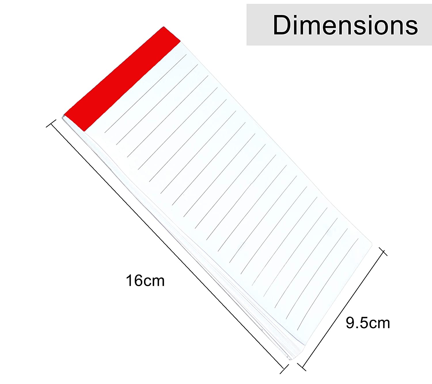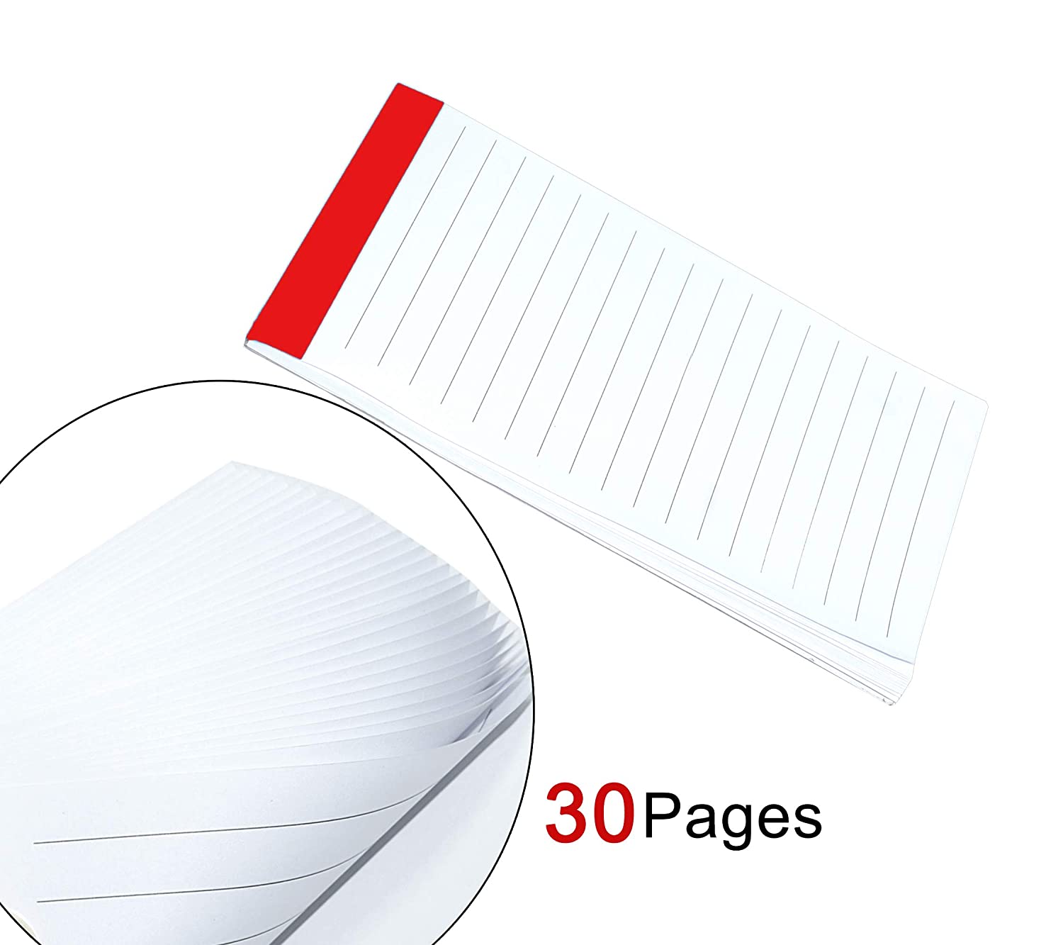 • Color :- Red. Size: 16 x 9.5 cm. 10-pack of 30 page Each white writing Notepad.
